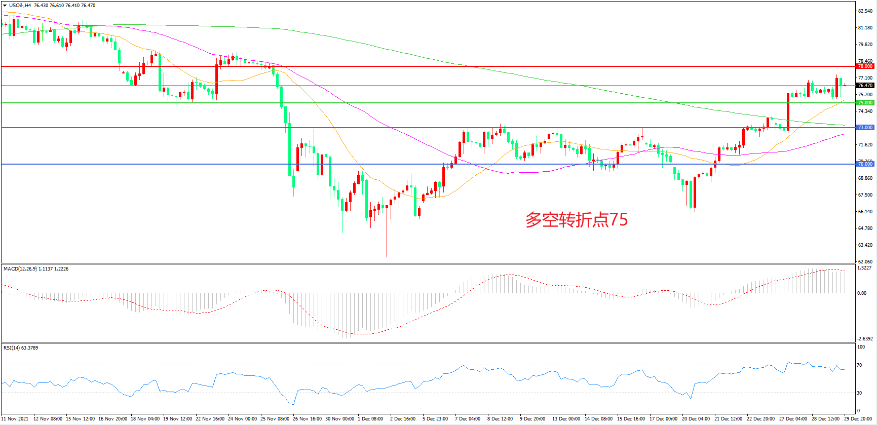 多空转折点:75.00