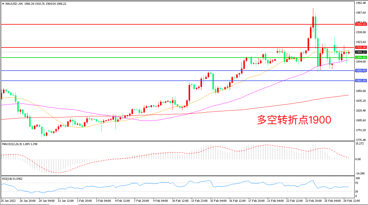 交易策略:在1900.00之上看涨,目标1915.00 1930.00