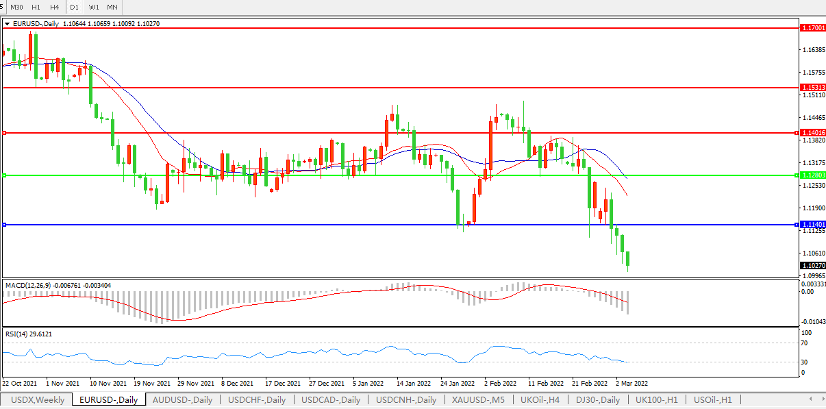 Manimbo称,乌克兰危机确实给油价涨势点了一把火,这确实成为欧元大幅走软的原因,也是大宗商品货币走强的主要原因。欧元下跌0.47%至1.1065,盘中一度跌至1.1033再次达到2020年5月以来的最低水平。欧元兑英镑跌至2016年7月以来的最低点。