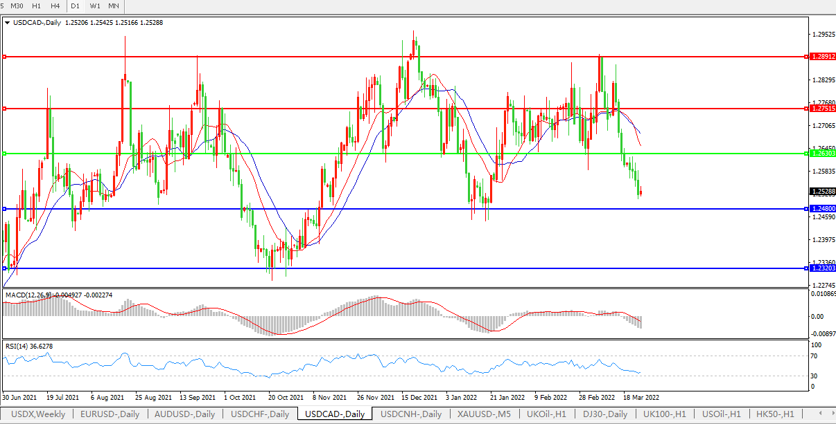美元兑加元USDCAD 日线图: