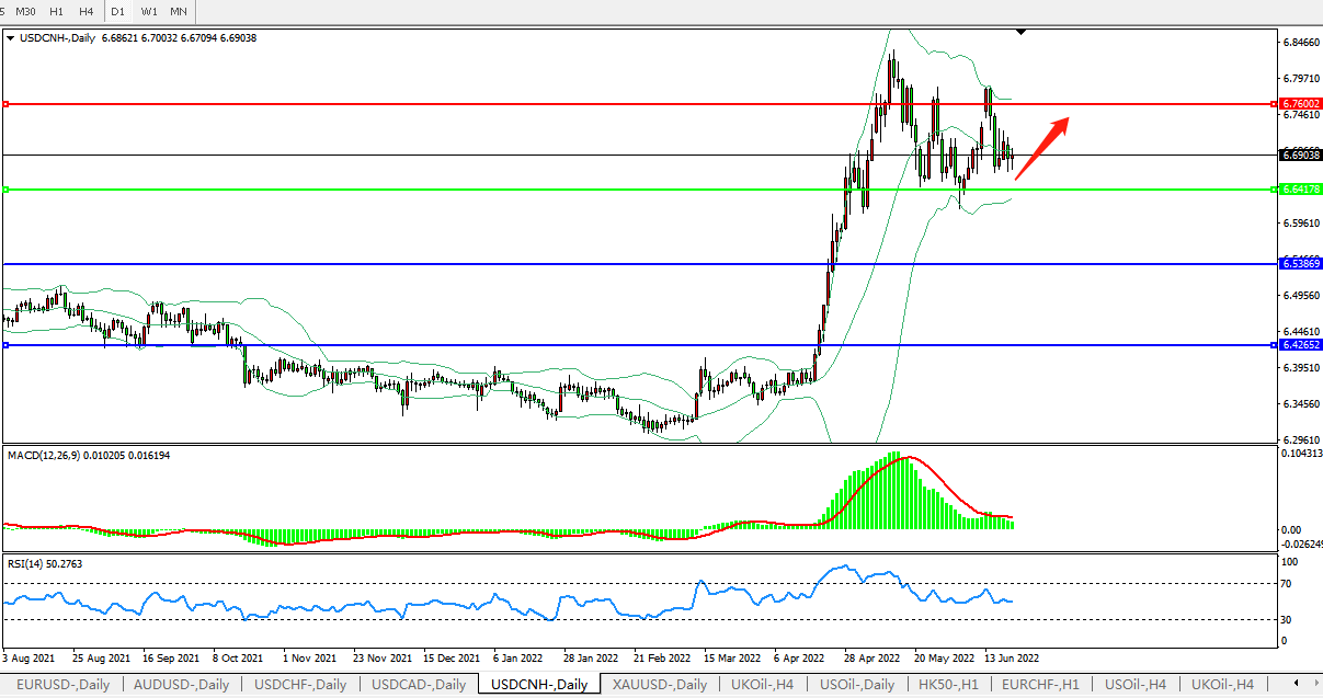 交易策略:在6.6416之上,看涨,目标价位为6.7600、6.8870。