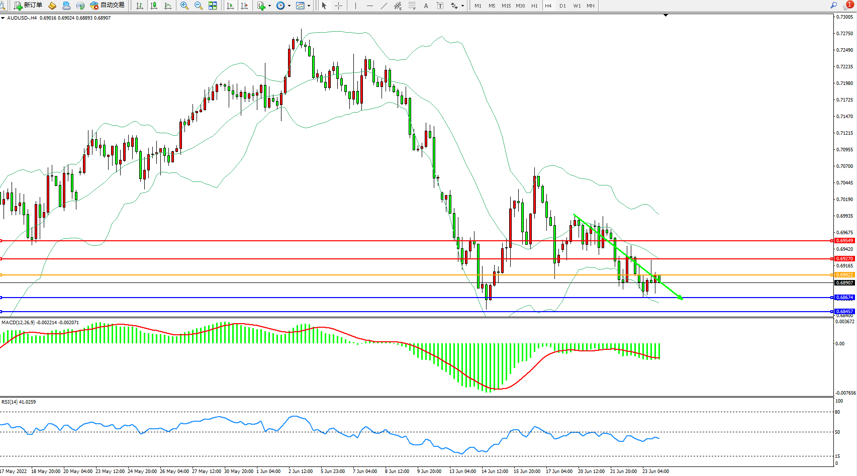 交易策略:0.69022下方看跌,目标0.68674、0.68457