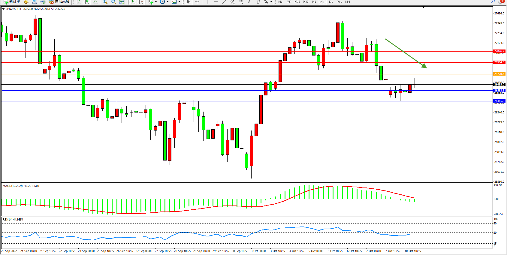 日经指数JPN225——4小时K线图显示: