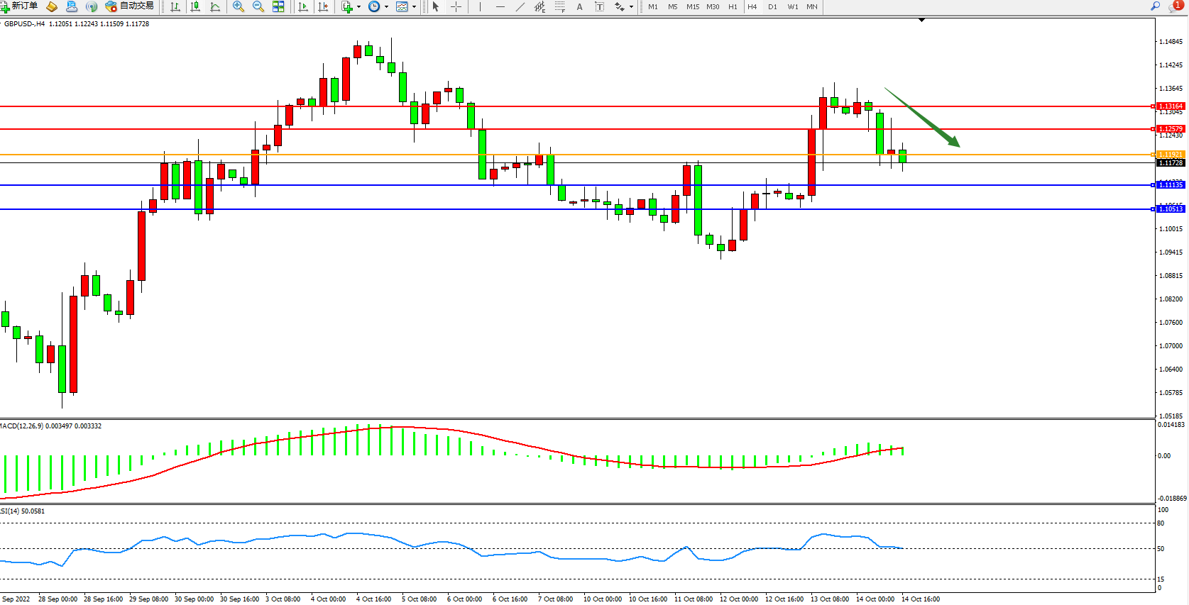 英镑美元GBPUSD ——4小时K线图显示: