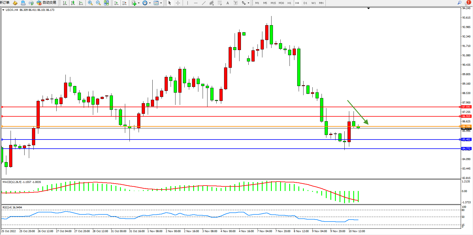 原油USOil——4小时K线图显示: