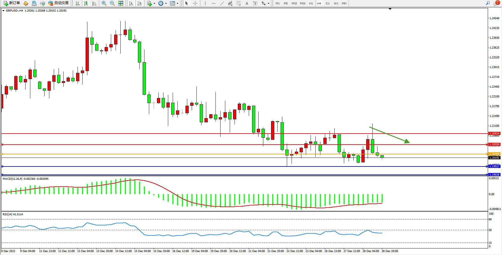 英镑美元GBPUSD ——4小时K线图显示: