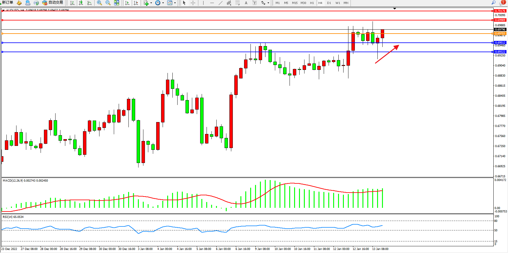 支撑:0.69512、0.69322