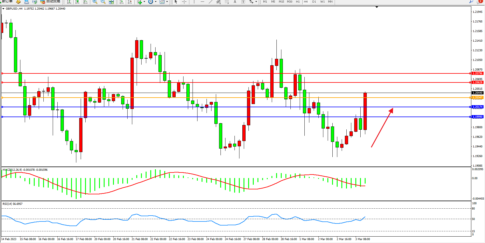阻力位:1.20628 1.20796