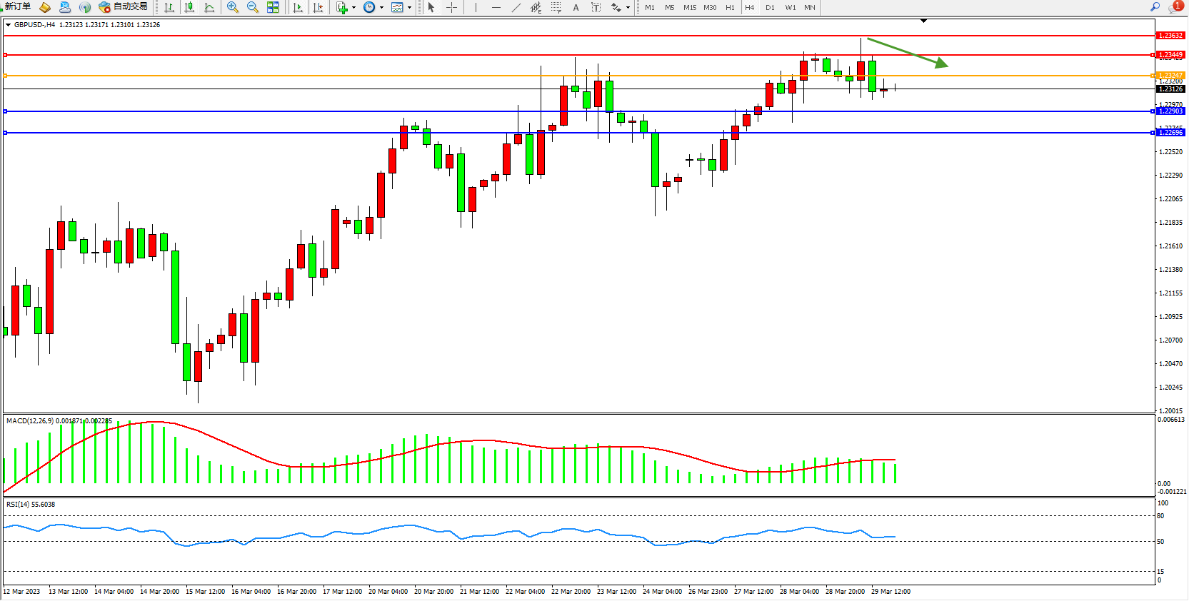 英镑美元GBPUSD ——4小时K线图显示: