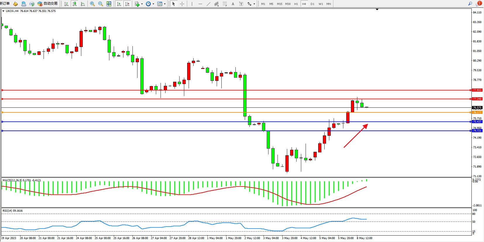 阻力位:77.240 77.933
