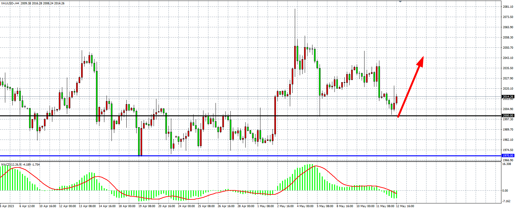 周五(5月12日)国债务上限危机和银行业压力仍存的担忧振了避险需求,现货黄金回弹2000关口后再度回升,最终日K线收出十字星。展望后市,关注的关键事件包括有“恐怖数据”之称的零售销售等更多宏观数据、债务上限辩论以及银行业危机蔓延的风险。