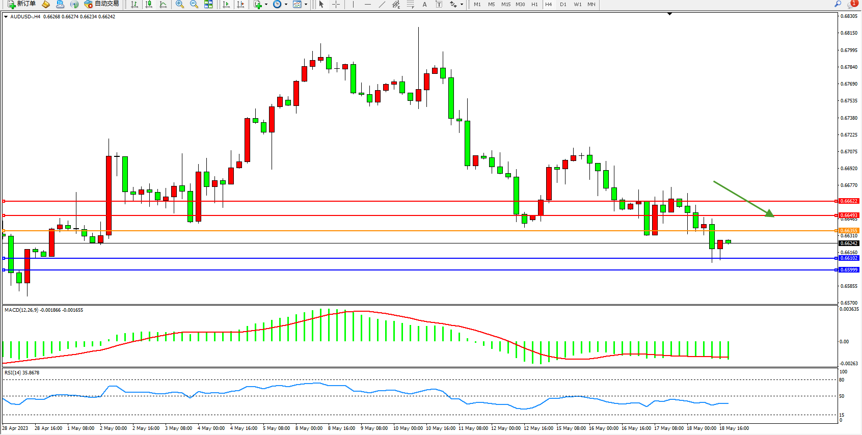 交易策略:0.66355下方看跌,目标0.66102 0.65999