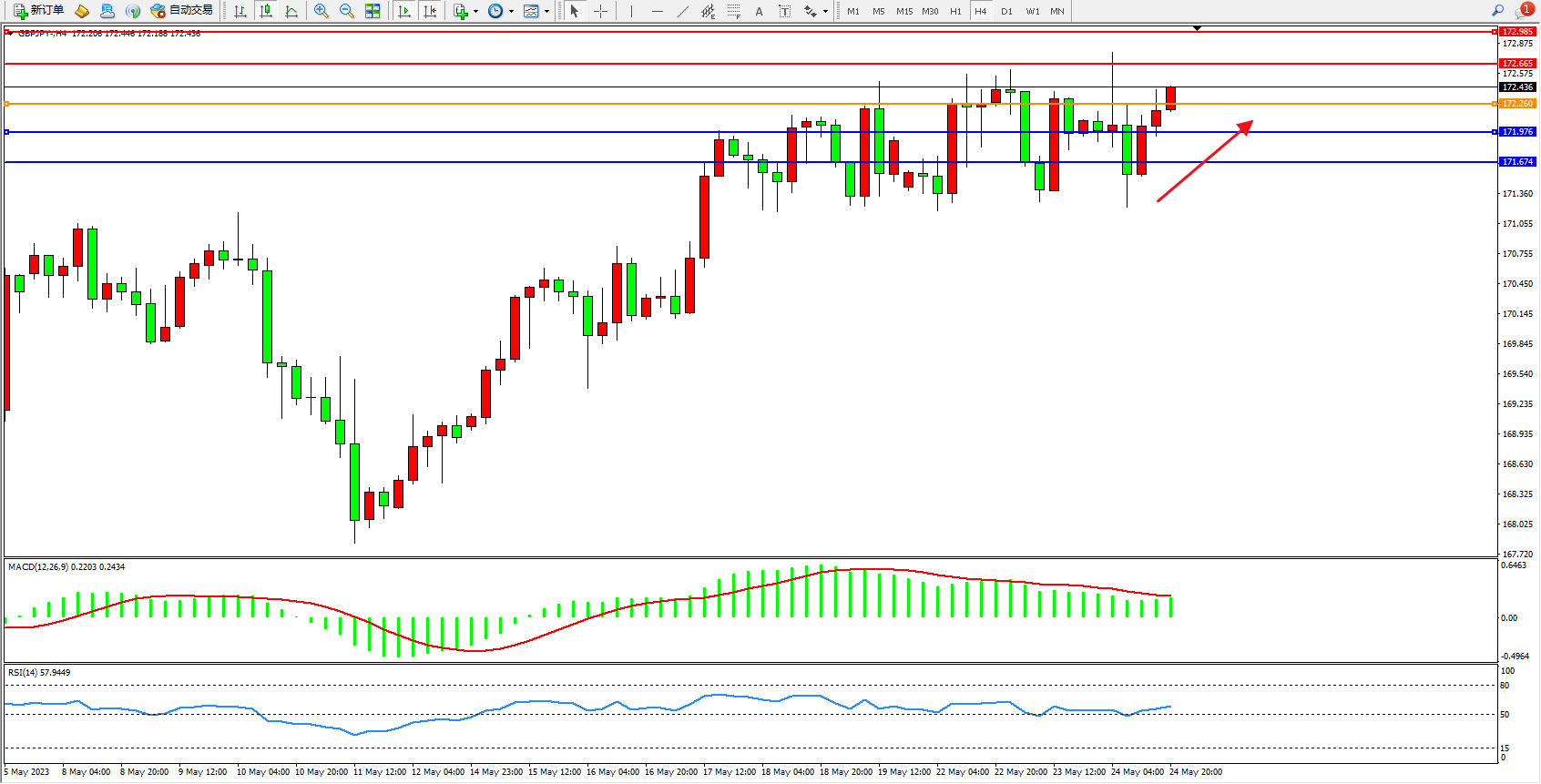 交易策略:172.260上方看涨,目标172.665 172.985