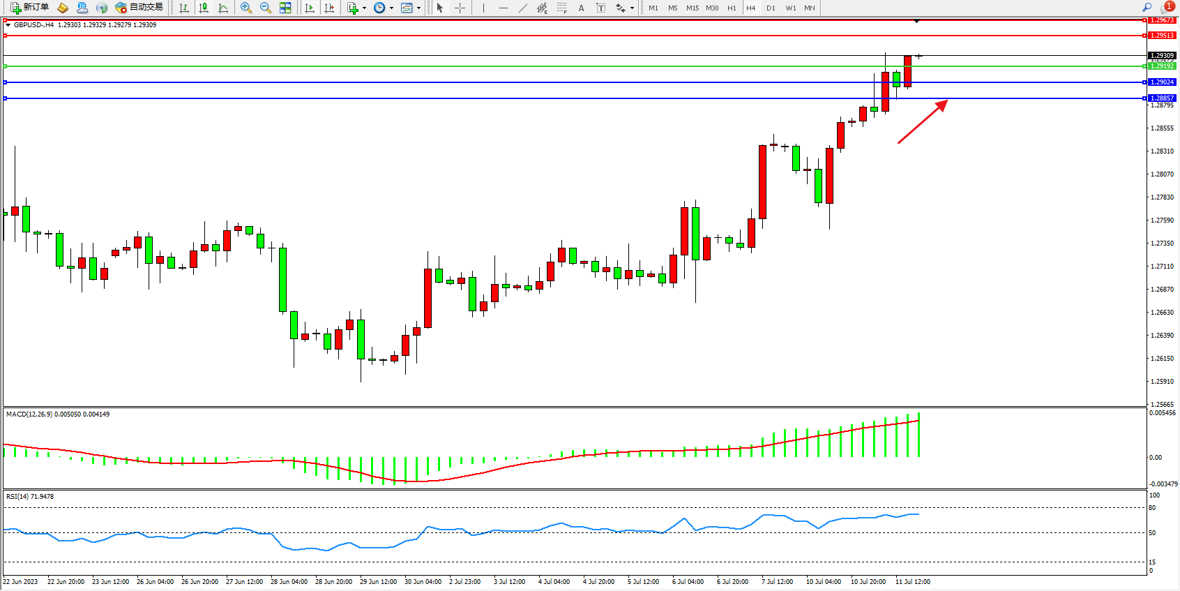 英镑美元GBPUSD ——4小时K线图显示: