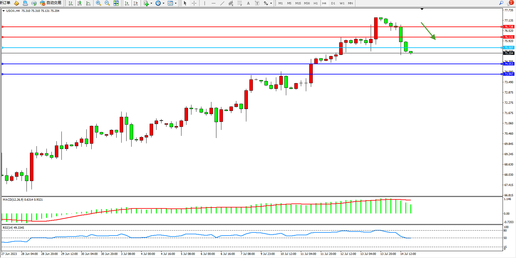 支撑位:74.553 73.947