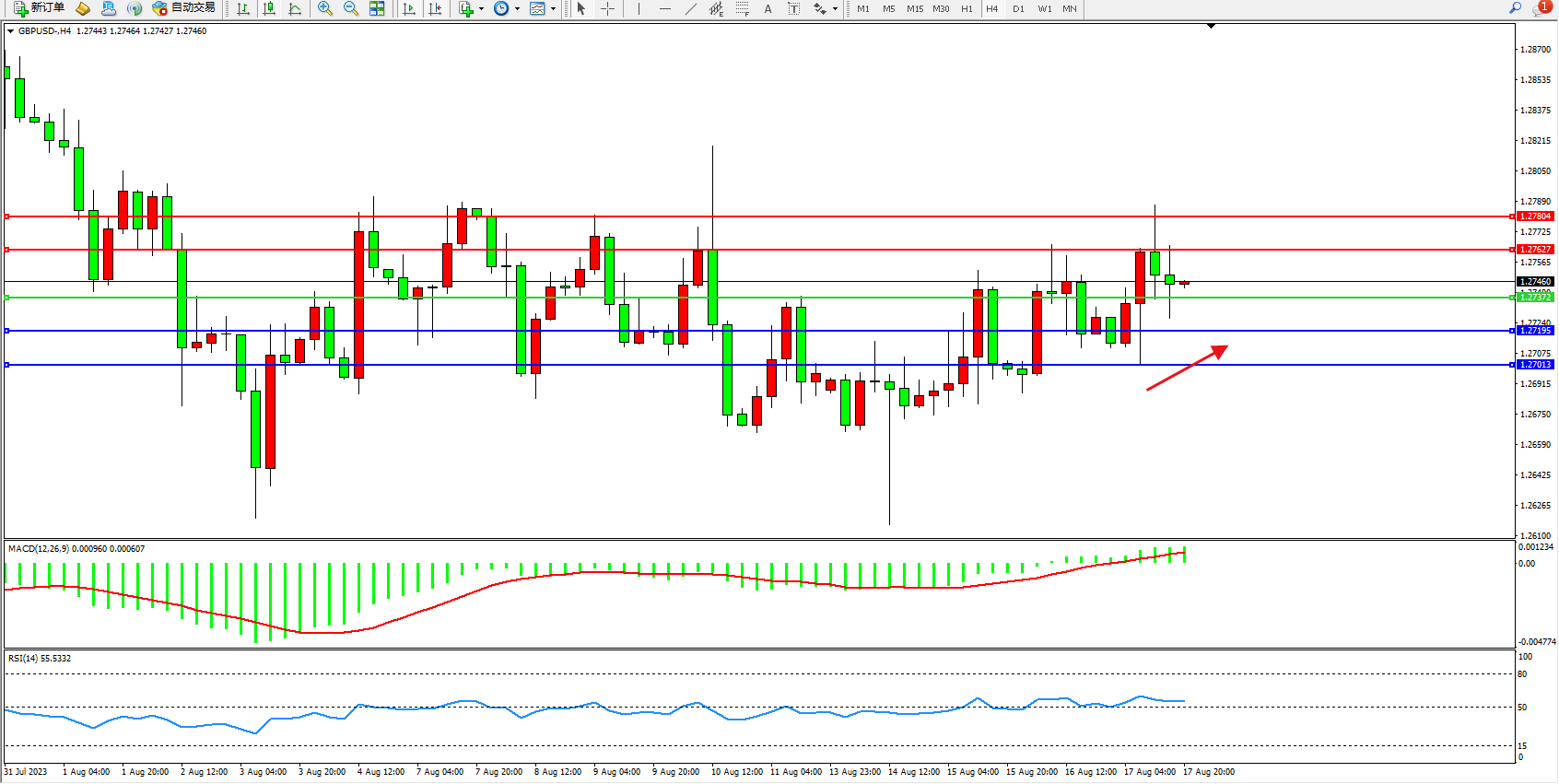 英镑兑美元维持1.27460附近震荡,通胀预期重新挂钩的风险仍然很大。英国央行很可能会在9月份的会议上加息50个基点,并在年底前将银行利率提高到6%。