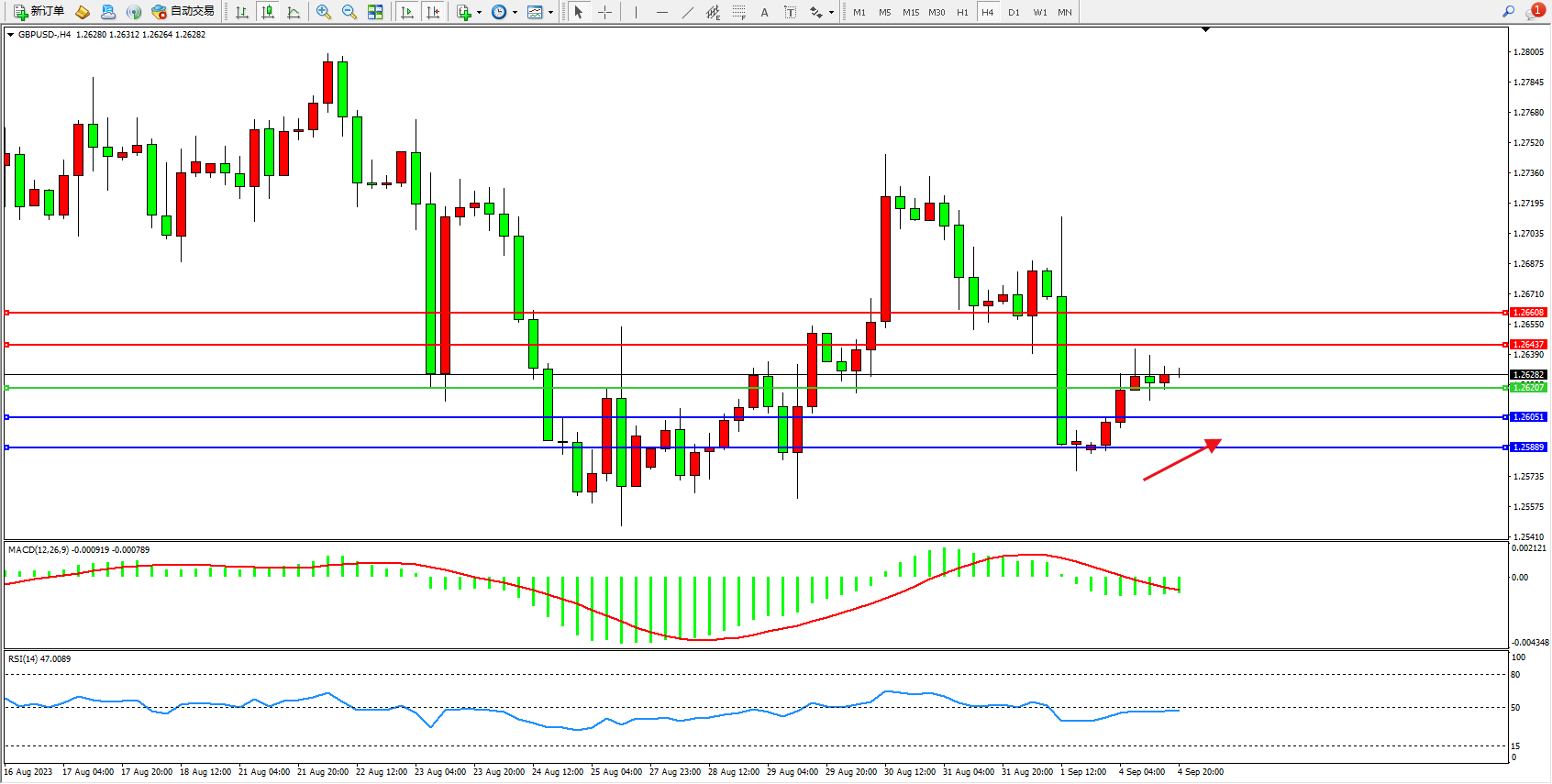 英镑美元GBPUSD ——4小时K线图显示: