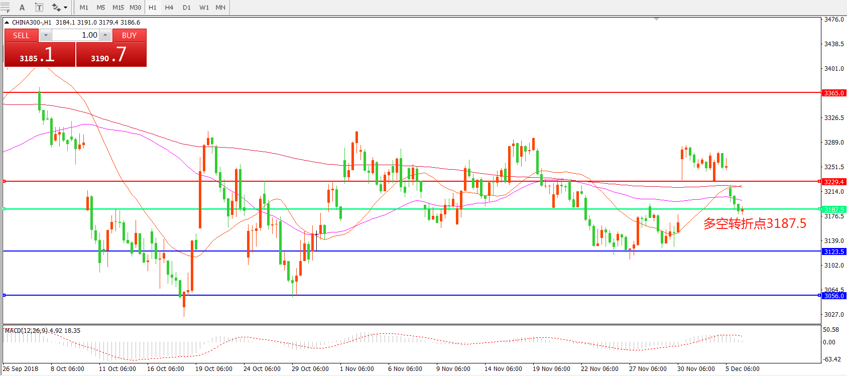 多空转折点:3187.50