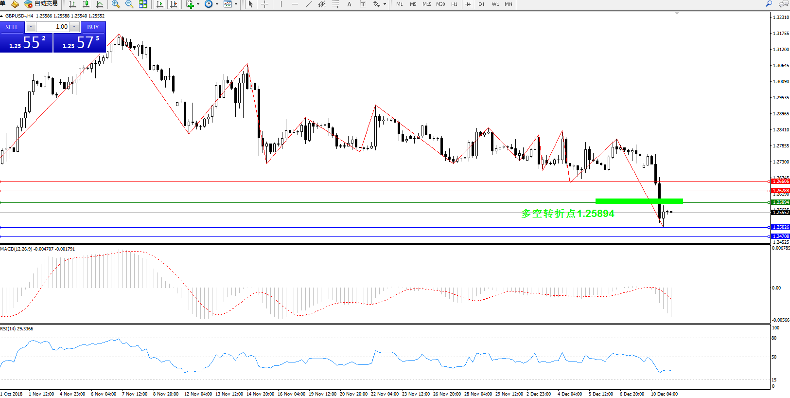 英镑美元GBPUSD ——4小时K线图显示: