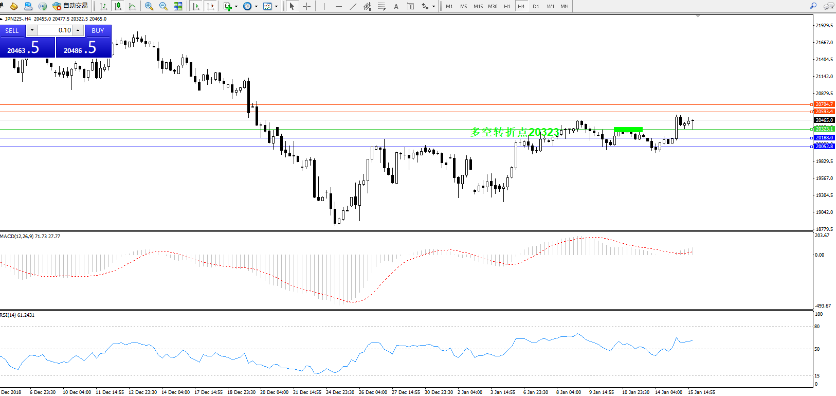 日经指数JPN225——4小时K线图: