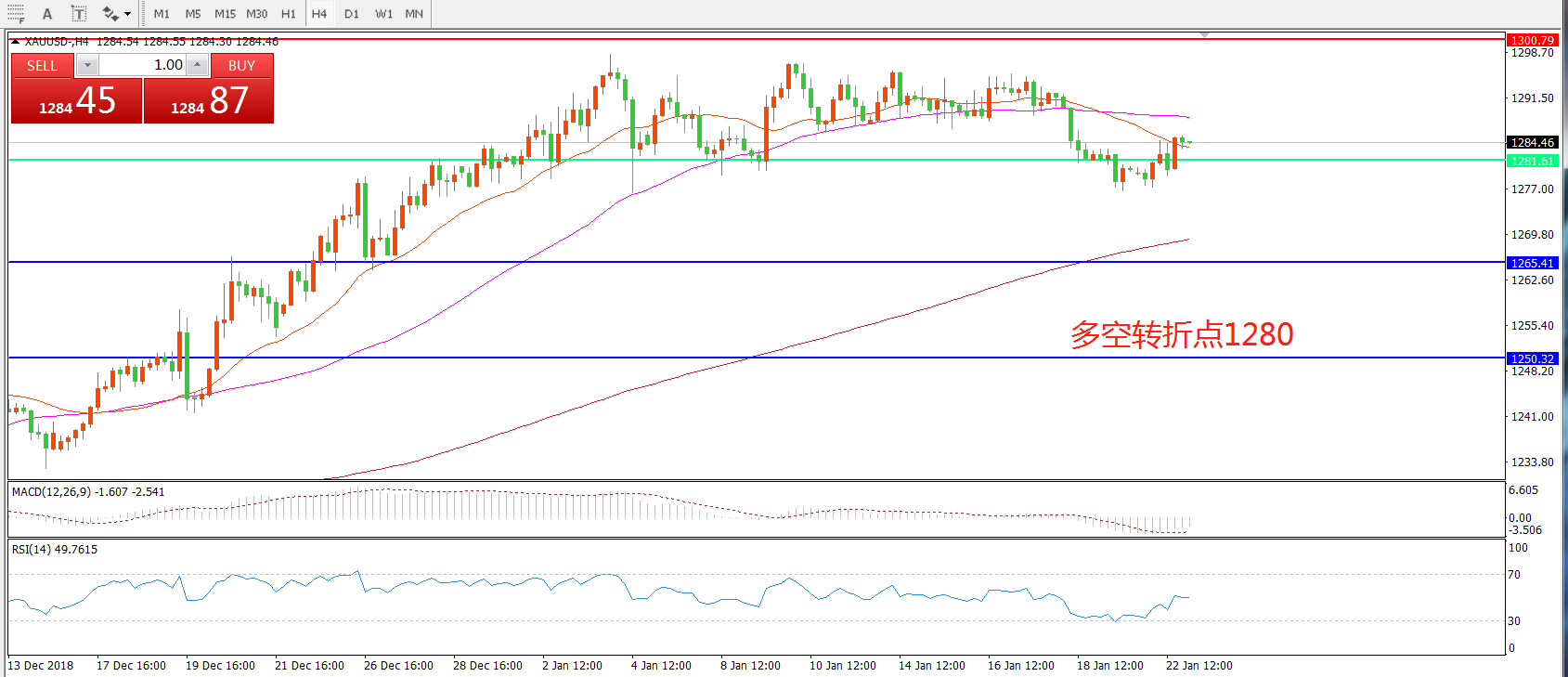 交易策略:在1280.00之下看跌,目标1265.00  1250.00