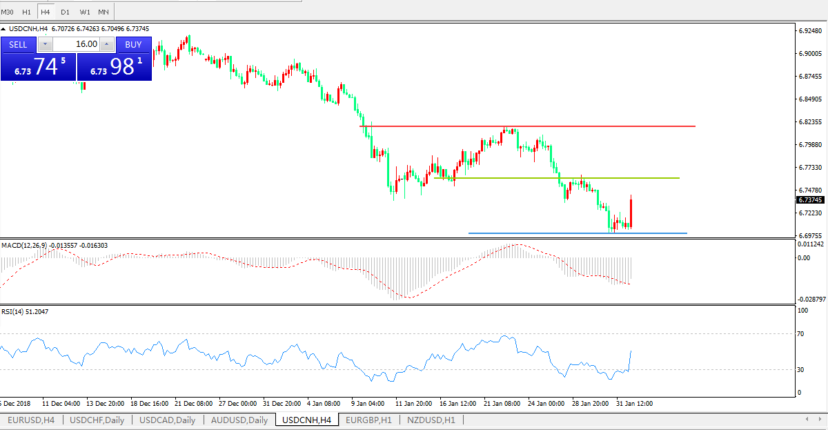交易策略:6.7650之下,看跌,目标价位为6.7240,然后为 6.7000