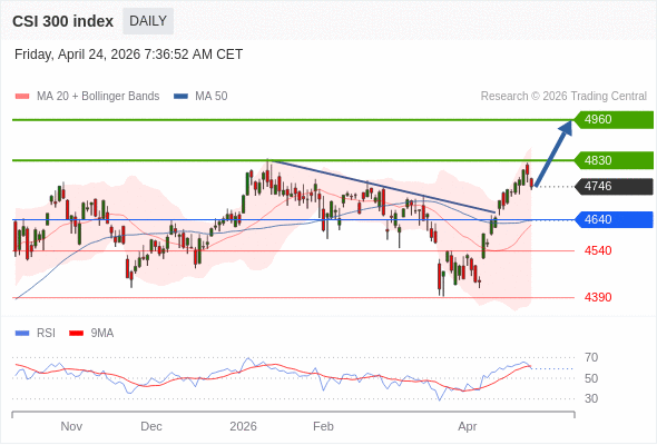 沪深300指数 短线: 看涨。