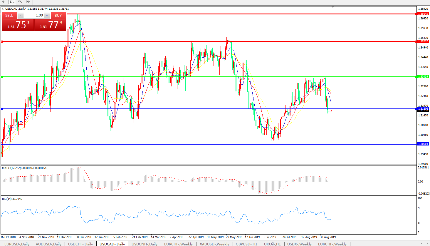 美元兑加元USDCAD    日线