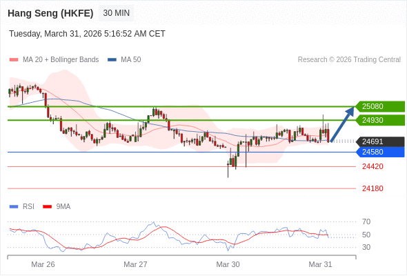 在 24580 之上,看涨,目标价位为 24930 ,然后为 25080 。