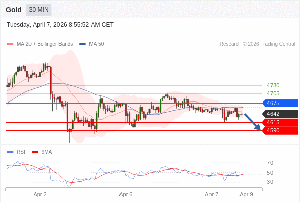 在 4675 之下,看跌,目标价位为 4615 ,然后为 4590 。
