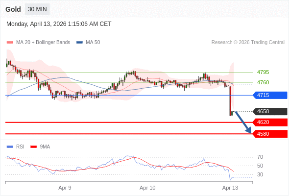 在 4715 之下,看跌,目标价位为 4620 ,然后为 4580 。