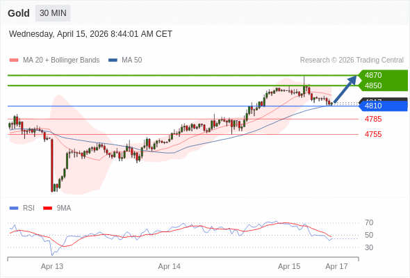 在 4810 之上,看涨,目标价位为 4850 ,然后为 4870 。