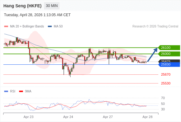 在 25830 之上,看涨,目标价位为 26000 ,然后为 26100 。