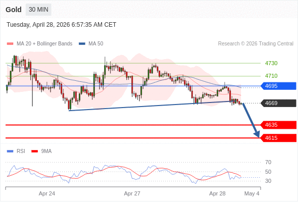 在 4695 之下,看跌,目标价位为 4635 ,然后为 4615 。