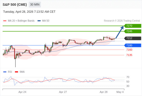 在 7180 之上,看涨,目标价位为 7245 ,然后为 7270 。