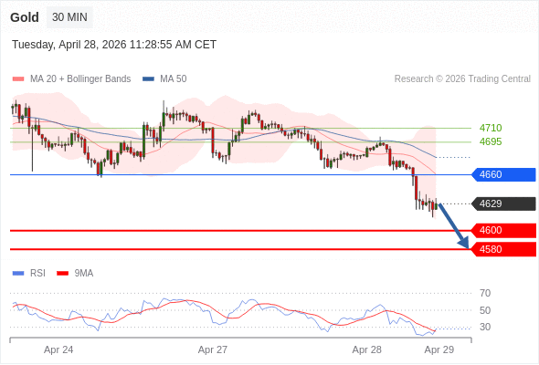 在 4660 之下,看跌,目标价位为 4600 ,然后为 4580 。