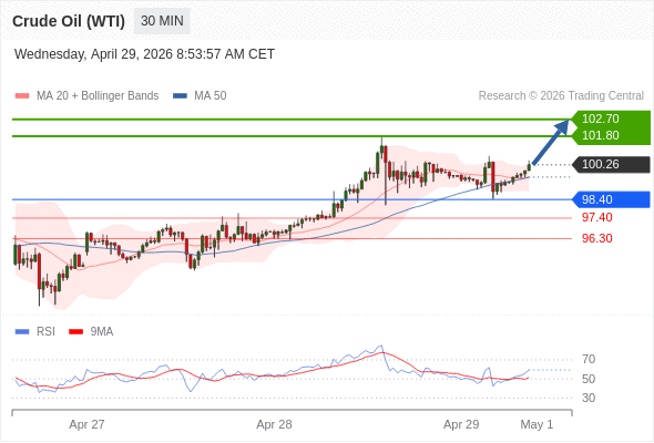 在 98.40 之上,看涨,目标价位为 101.80 ,然后为 102.70 。