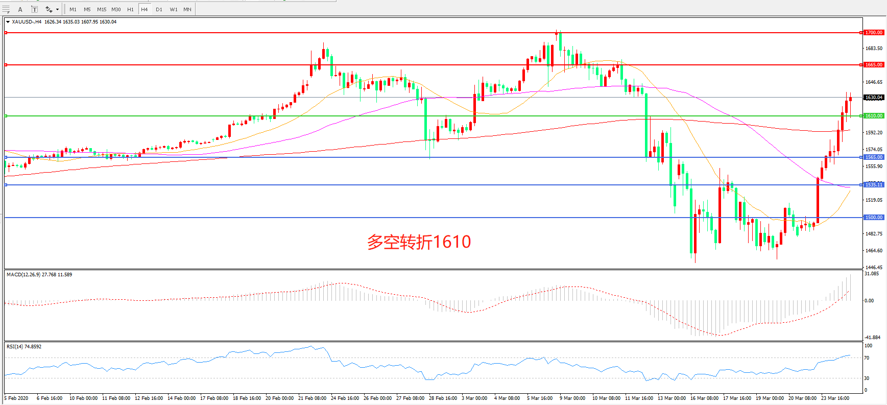 多空转折点:1610.00