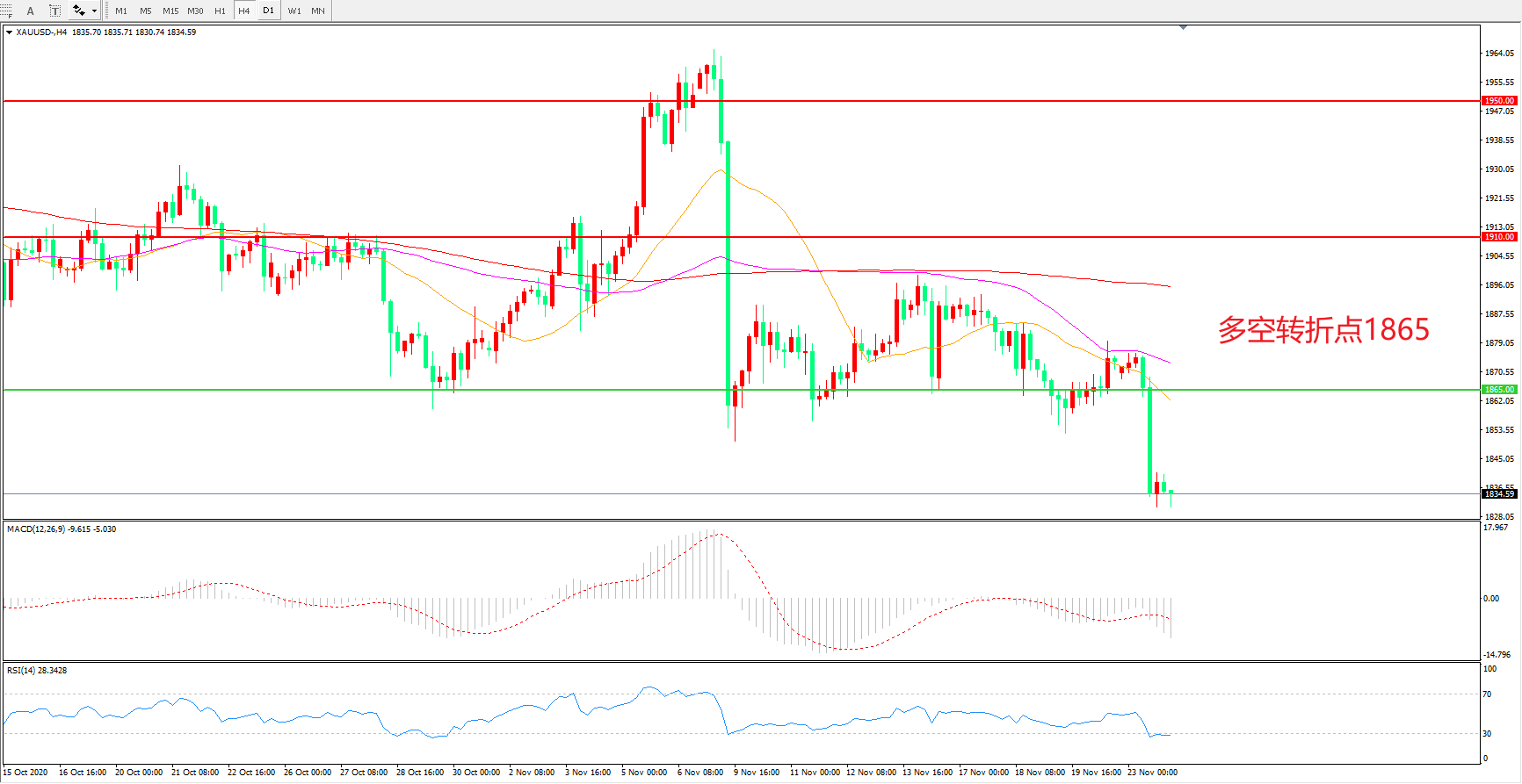 交易策略:在1865.00之下看跌,目标1815.00   1765.00