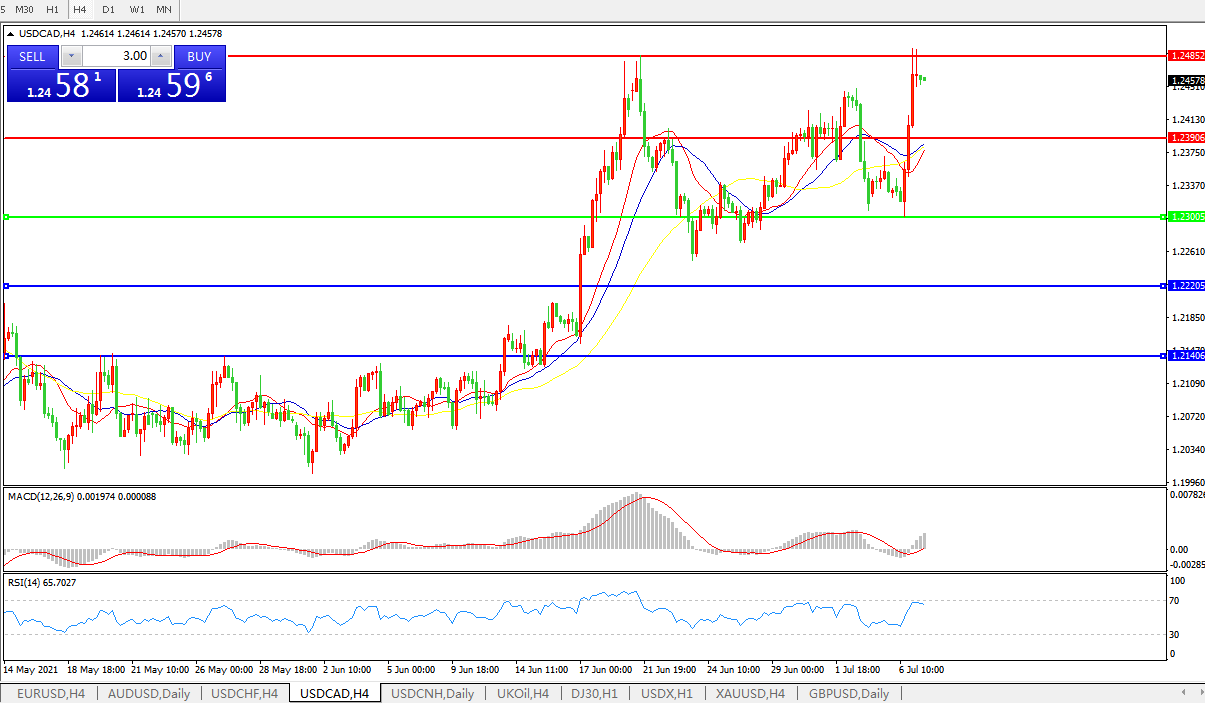 美元兑加元USDCAD 4小时图: