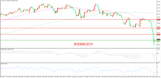 备选策略: 在70.00之上看涨,目标72.50             75.00
