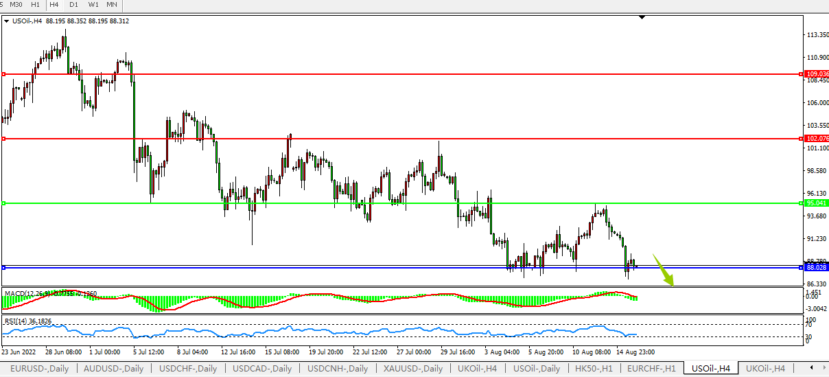 美国原油USOil 4小时图