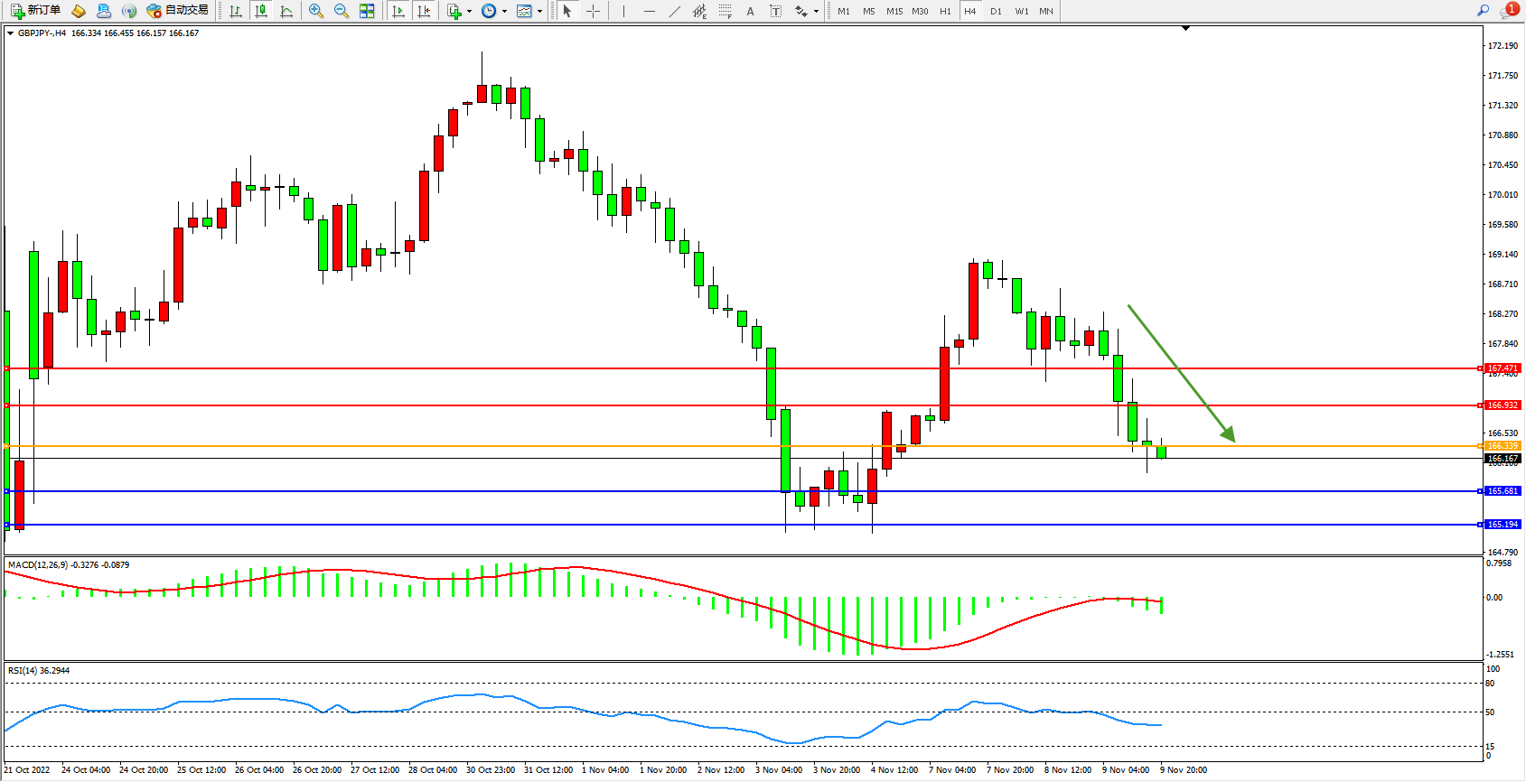 英镑兑日圆维持166.165附近震荡,随着全球经济增长放缓、信心恶化、通胀持续走高和利率上升进一步挤压可支配收入,英国经济几乎不可避免地将陷入衰退。继续预测明年经济将萎缩0.5%。但是,由于市场预测没有考虑到占GDP 2%的财政整顿措施,因此经济增长偏向下行,特别是对于未来两年来说。