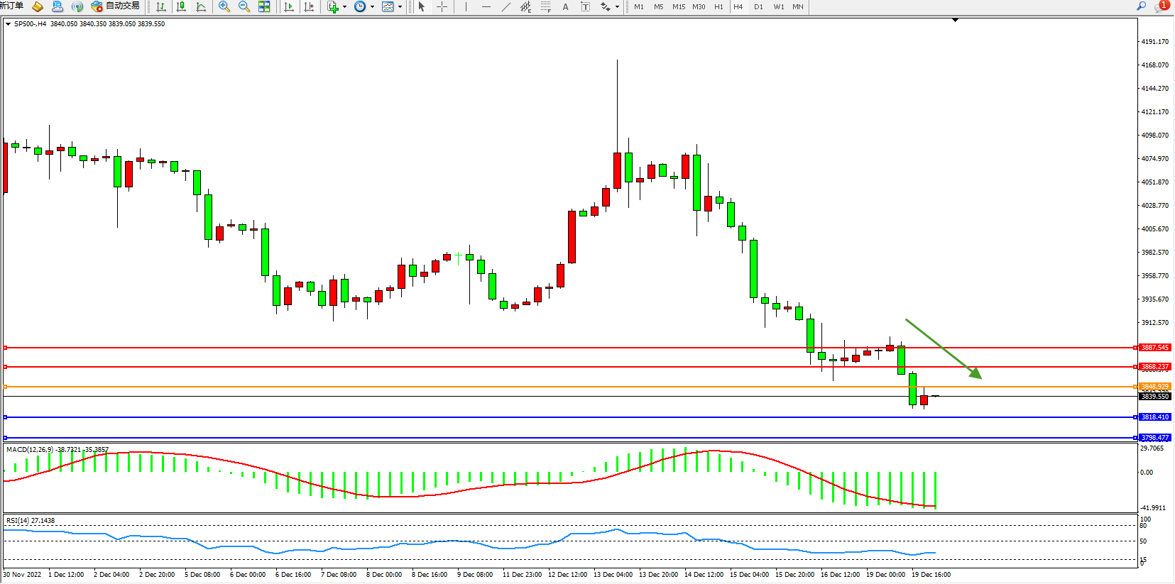 标普SP500——4小时K线图显示: