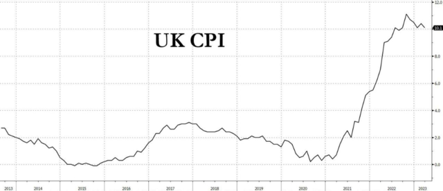 周三,英国国家统计局公布数据显示,英国3月CPI指数继续保持在两位数,同比增长10.1%,远高于此前经济学家预计的放缓至9.8%。这是由40多年来最强劲的食品价格增长推动的。