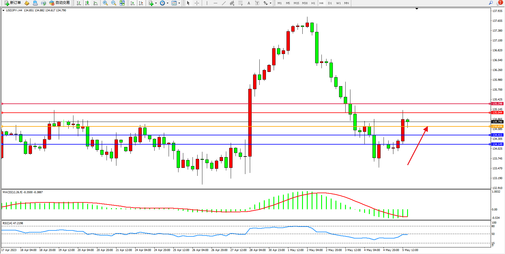 阻力位:135.044 135.298