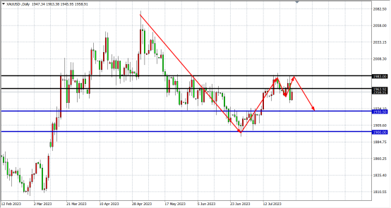周二(7月25日)美国经济数据仍充满矛盾,一方面消费者信心指数升至2年新高,另一方面里士满联储7月制造业活动继续低迷,市场情绪越来越紧张,美指在连涨5日后出现回落,现货黄金转涨收复1960关口。展望后市,虽然本周加息25个基点的预期早已被消化,但是鲍威尔随后的任何指导都将引爆市场。