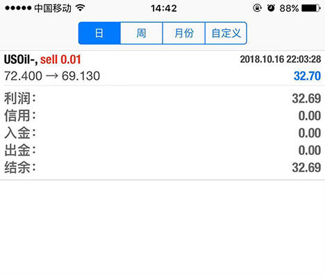 点击菜单栏的“历史”图标,可按今天、周、月份、自定义周期查看交易历史订单。
