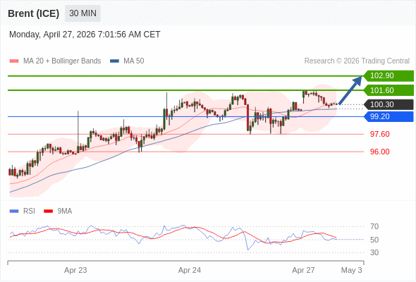 在 99.20 之上,看涨,目标价位为 101.60 ,然后为 102.90 。